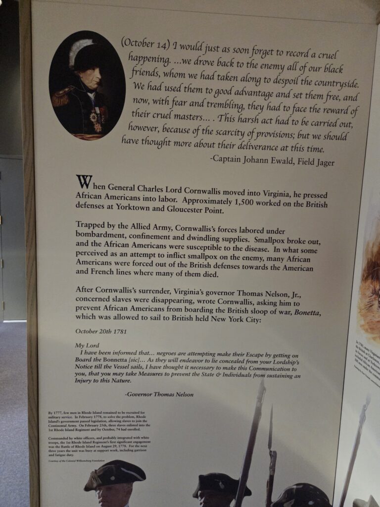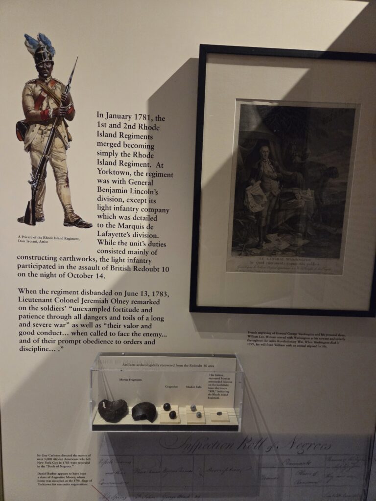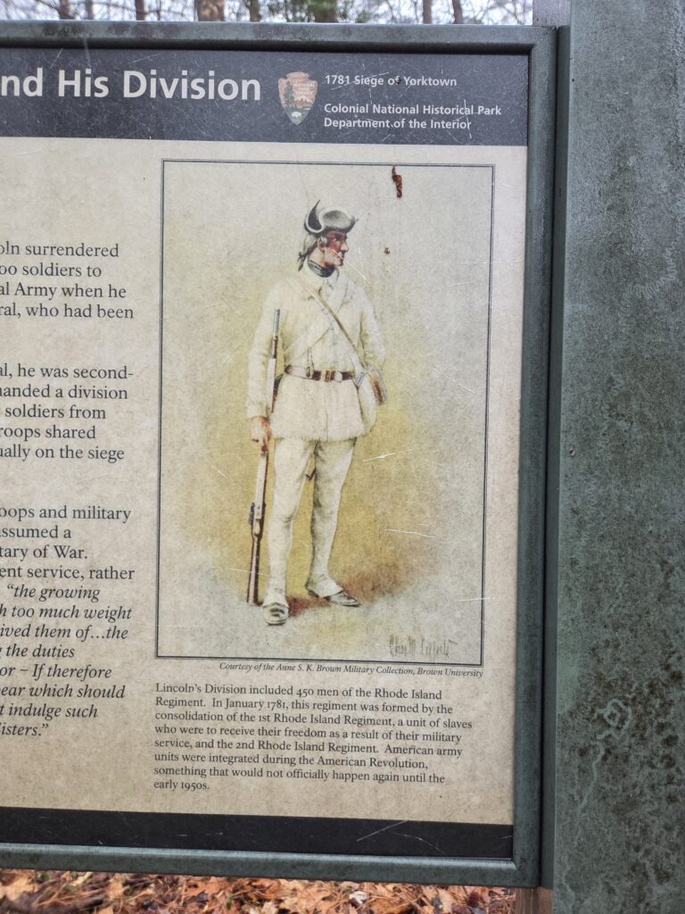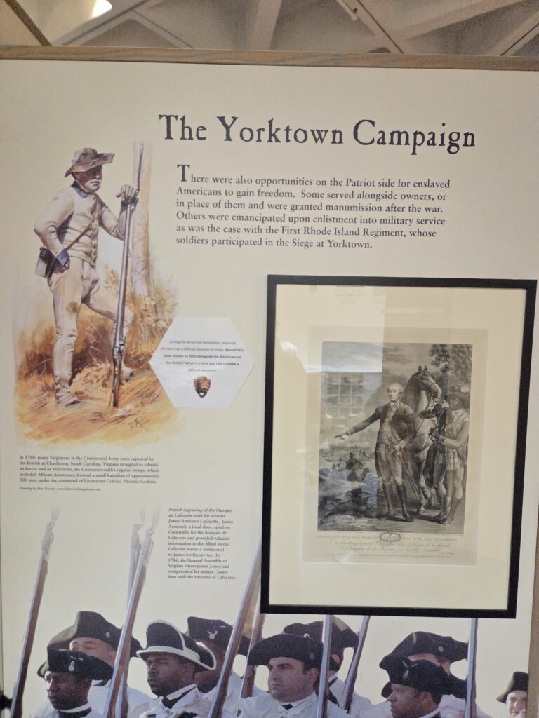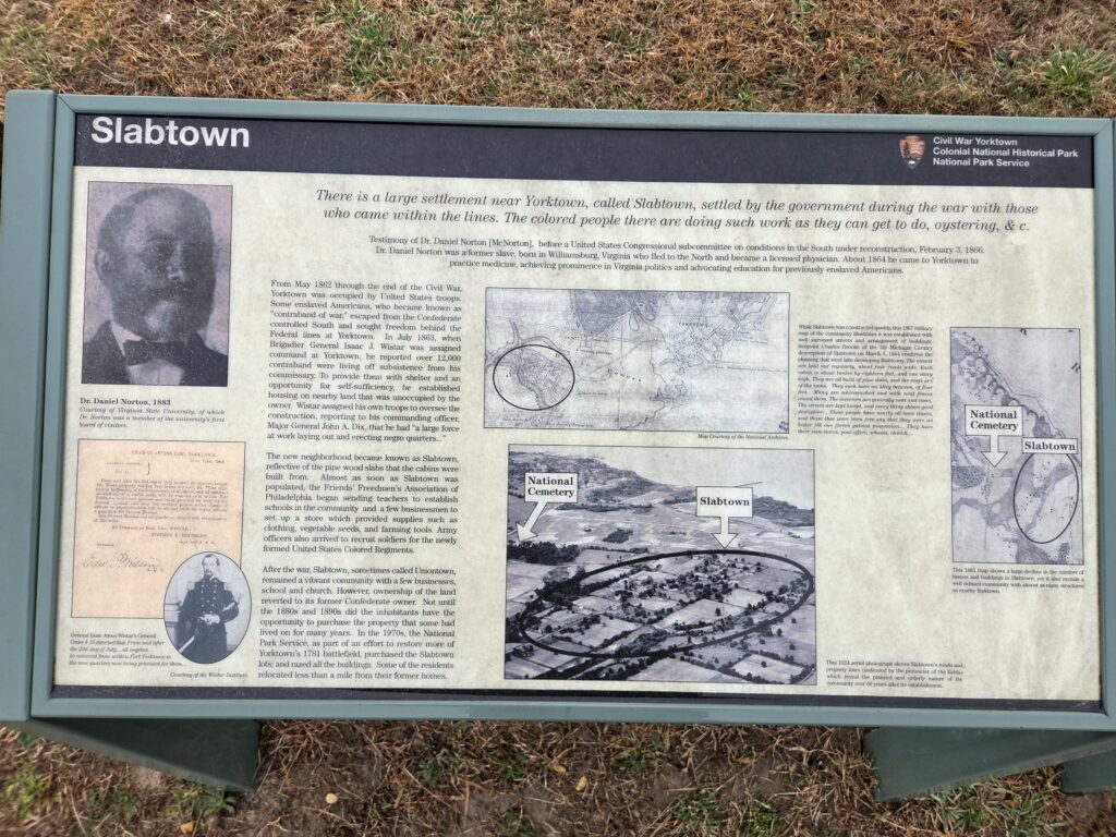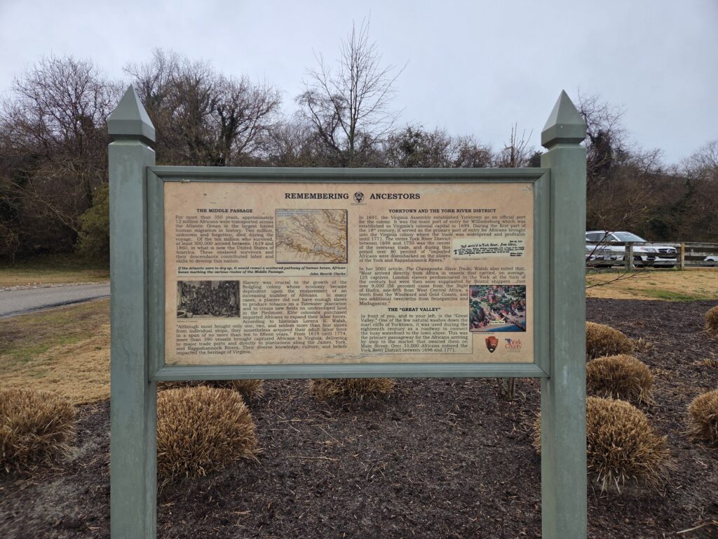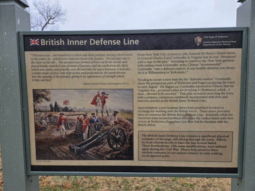 Yorktown and Yorktown Battlefield are located in historic Yorktown, Virginia.  The historic town of Yorktown dates to 1691 and has a long history connected to enslavement, as the town served as a major port for the importation of enslaved Africans.  The battlefield was the site of the siege in September and October of 1781 that culminated in an American Victory, the last major action of the Revolutionary War.  Beyond it’s Revolutionary era history, the battlefield also has a rich Civil War history as a site for Civil War entrenchments and a refuge for escaped enslaved persons.
