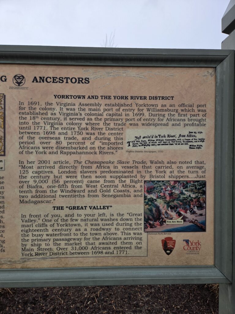 Yorktown served as a major port in the colony of Virginia for the importation of enslaved Africans.